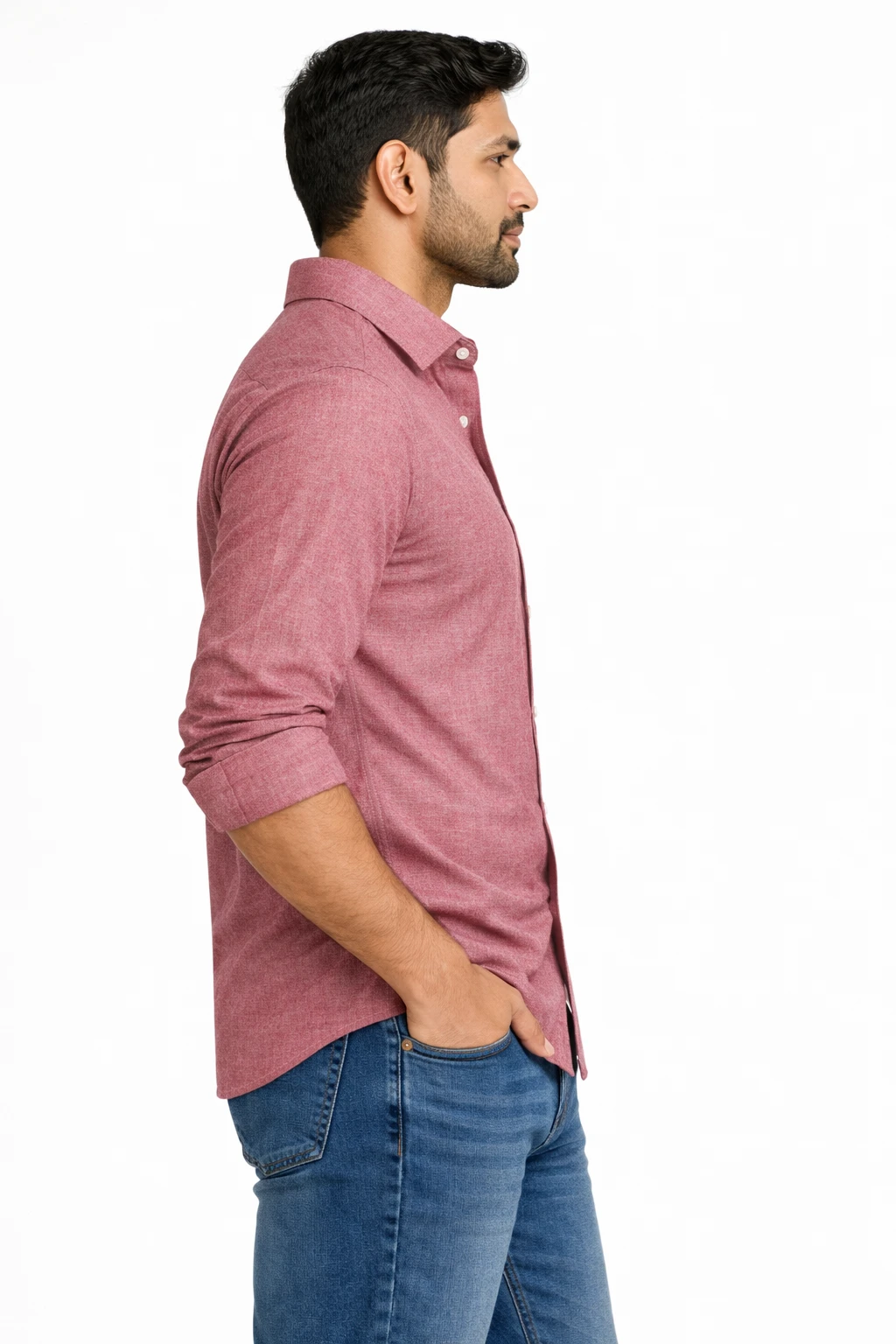 Maroon solid casual shirt featuring a spread collar, full button placket, and long regular sleeves. Designed with a clean, minimal aesthetic, this shirt delivers everyday comfort with a refined finish, making it suitable for both casual and smart-casual occasions.