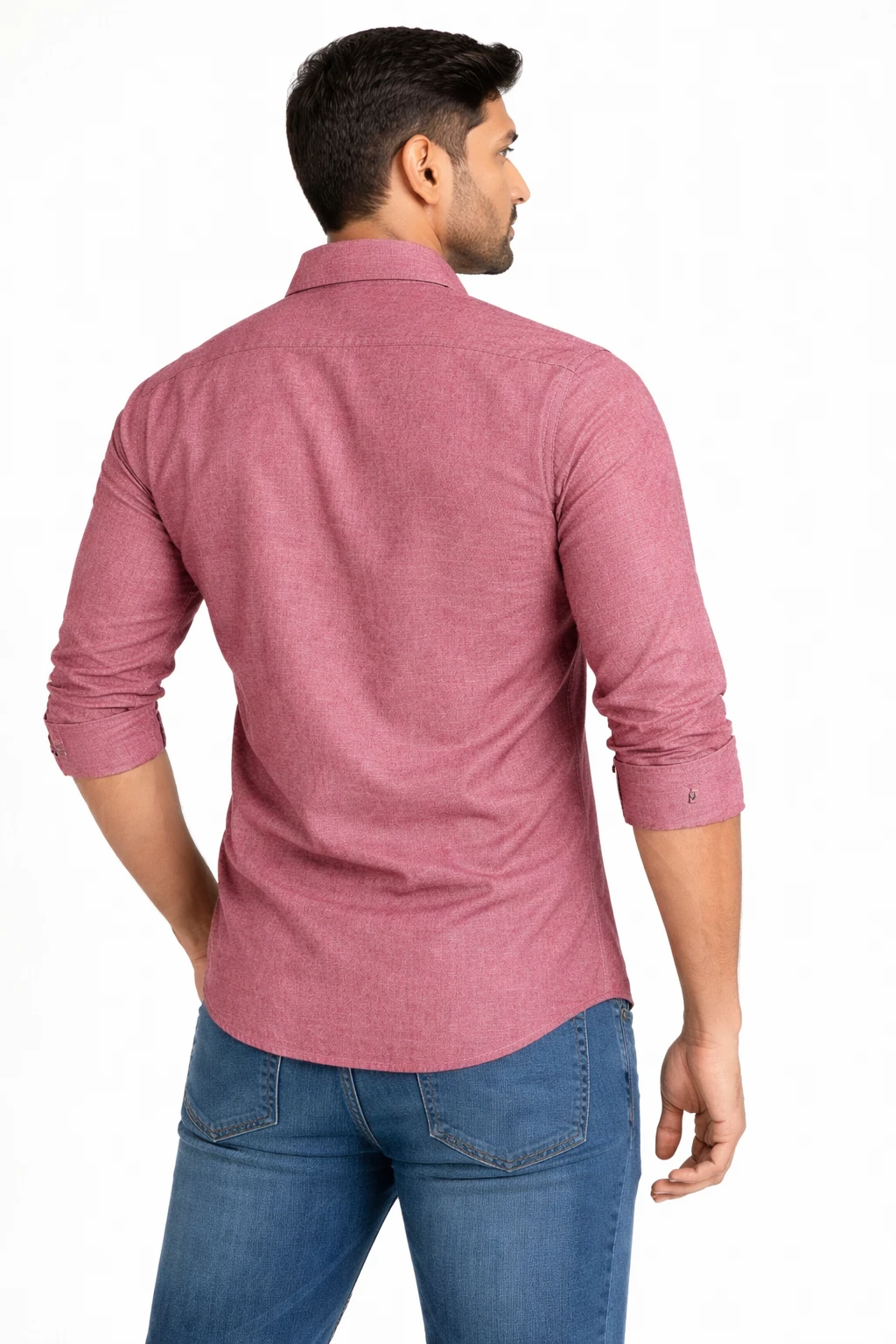 Maroon solid casual shirt featuring a spread collar, full button placket, and long regular sleeves. Designed with a clean, minimal aesthetic, this shirt delivers everyday comfort with a refined finish, making it suitable for both casual and smart-casual occasions.